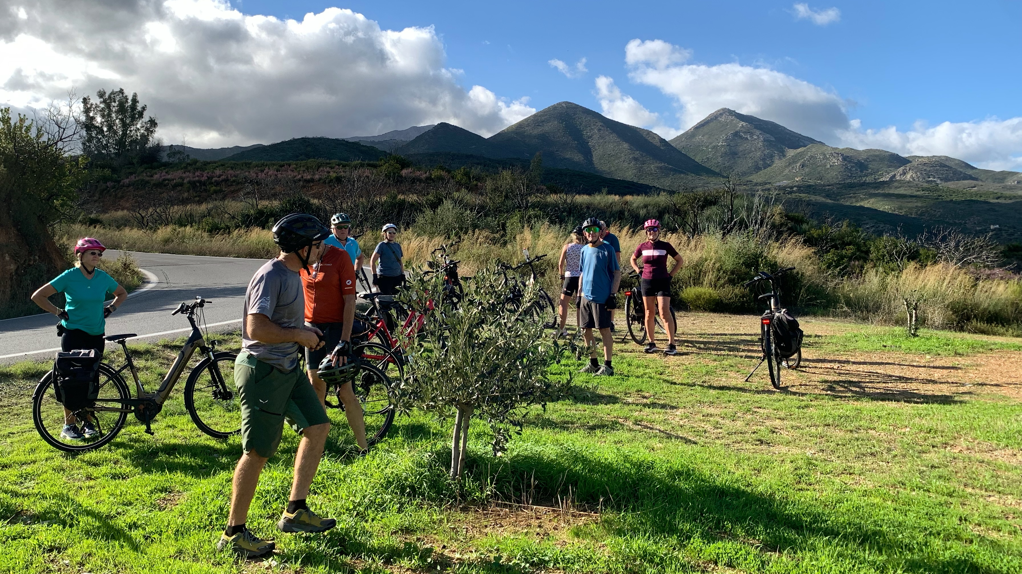 Unfortunately three of the nine bikes in our group had mechanical problems right from the bike shop. One had a rear tire where the tread was so worn that the tire casing was visible. The bike got two flat tires the first day. We replaced the tire on day two. Another bike had a severely out of true rear wheel that rubbed on the frame, had loud creaks from the bottom bracket, and shifting problems. The third bike had a very creaky headset and shifting problems. Jorge tried to help us by connecting us with a bike shop in Antequera. The bike shop sold us a new tire and tube (paid for by the tour operator) but showed no interest in fixing the out-of-true wheel. He wanted six hours to change the tire so we did it ourselves. We were able to adjust the axle so that it did not rub on the frame but the bike wobbled at speeds over 30km. Clearly the bikes had not been thoroughly examined prior to our tour.
