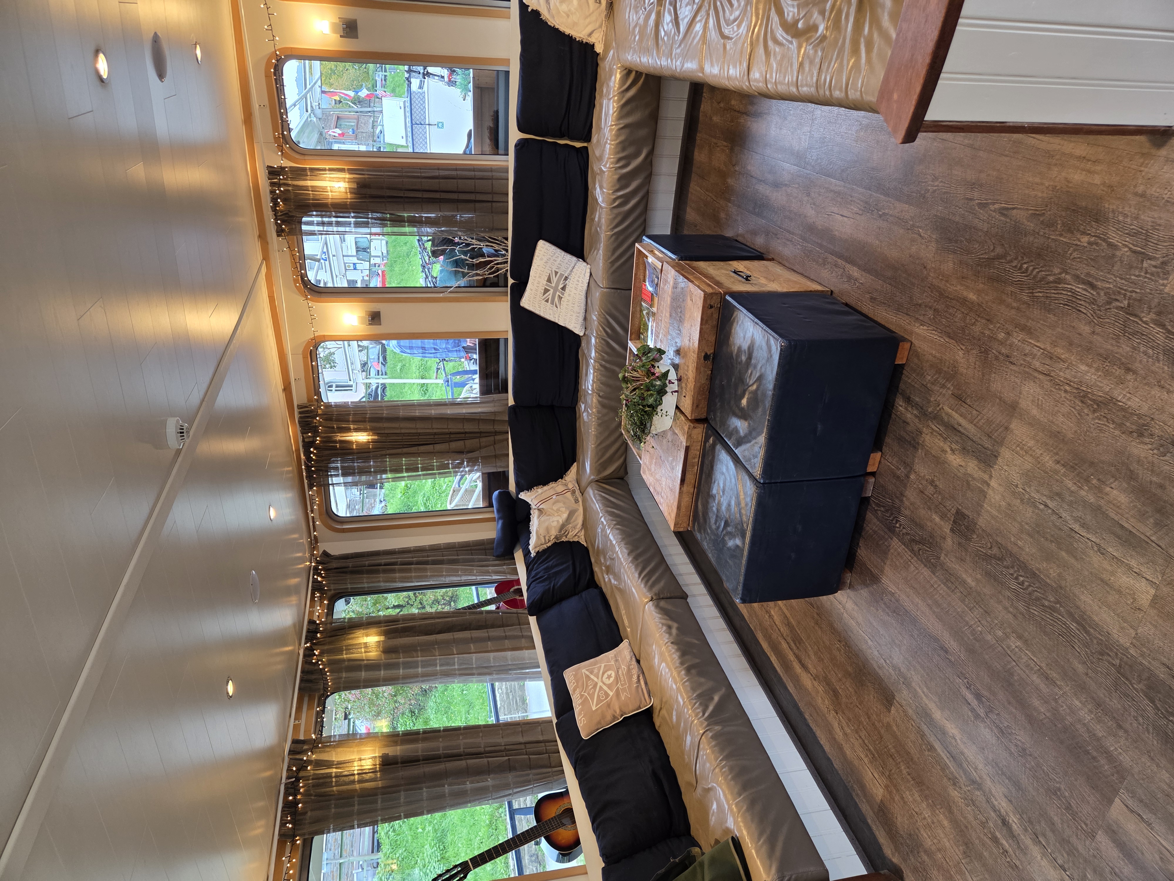 We chose the ship the Iris. Its an intimate barge which holds a maximum of 24 passengers. On our trip there were 19. Our rooms were spacious with two single beds and ample room for storage. The bathroom although small was everything one needed. We were quite comfortable. Above deck there was a spacious lounge and a lovely dining area. Additionally there was seating out of doors on the front deck. Temperatures were a little cool in mid-October so we didn't spend a lot of time there.