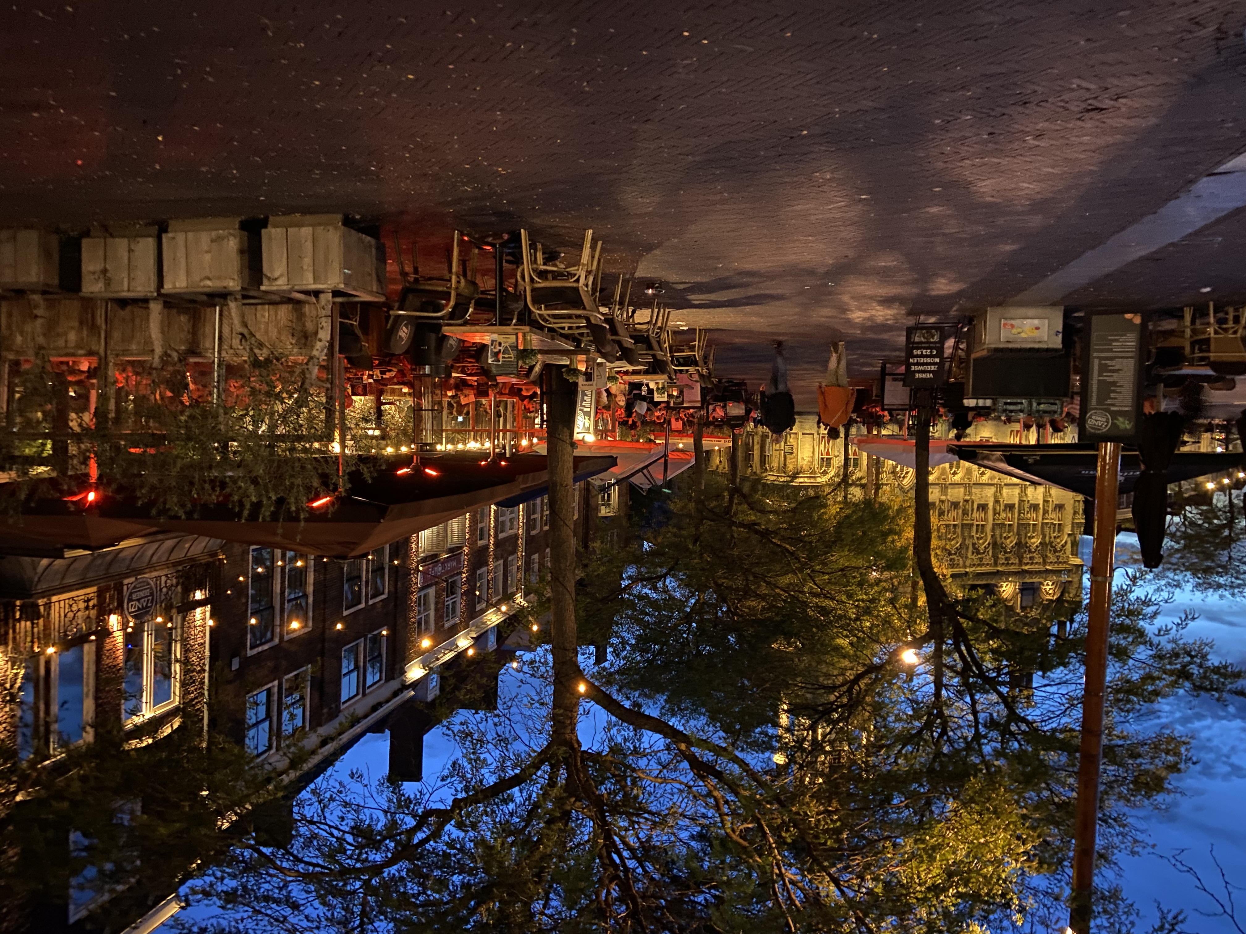 • A pretty café in Utrecht as night falls. (photo by Susan T.)